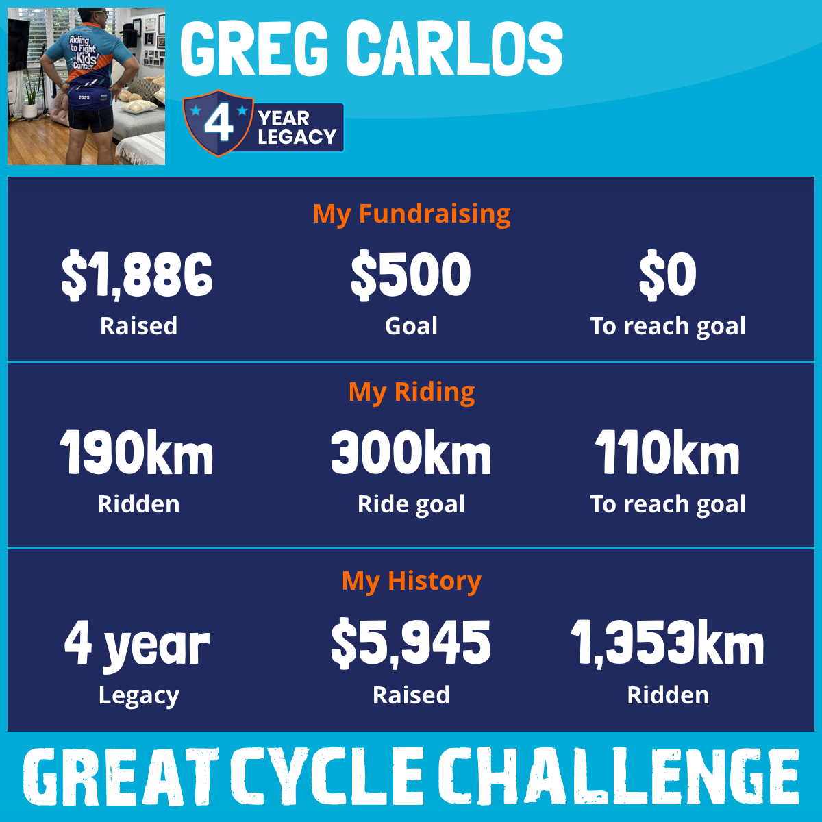 190 km Ridden$1,886 Raised2026