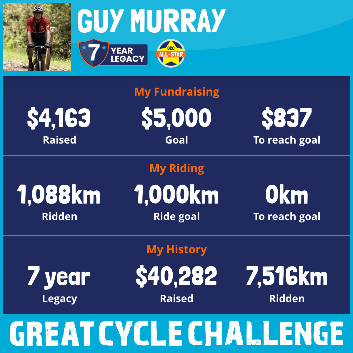 This October, I am aiming to ride as many kms as I can in the Great Cycle Challenge to fight kids' cancer & in memory of loved ones & friends who lost their lives to cancer; Vera (8yrs old), Judy, Uncle Don, Teddy, Ian, Robyn, Lyndal, Trisha, Tracey & Leonie.