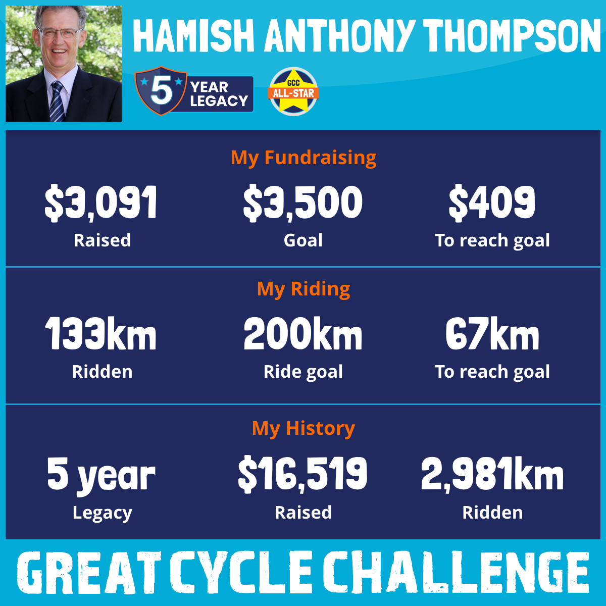 And so I am riding and raising funds to support the Children's Medical Research Institute to continue their work into the prevention, diagnosis, treatment and finding a cure for childhood cancer.