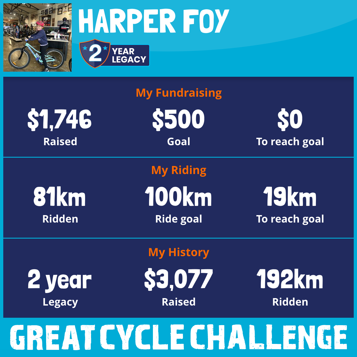 81 km Ridden$1,746 Raised2026