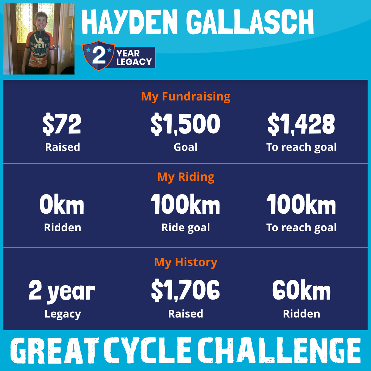I am riding 100 km in memory of Nanna G and Shane. Please sponsor me and support my challenge to fight kids' cancer and save little lives.