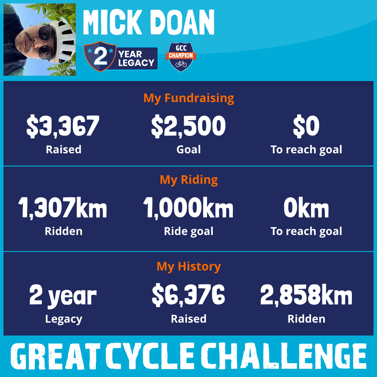 1,549 km Ridden$3,367 Raised2026