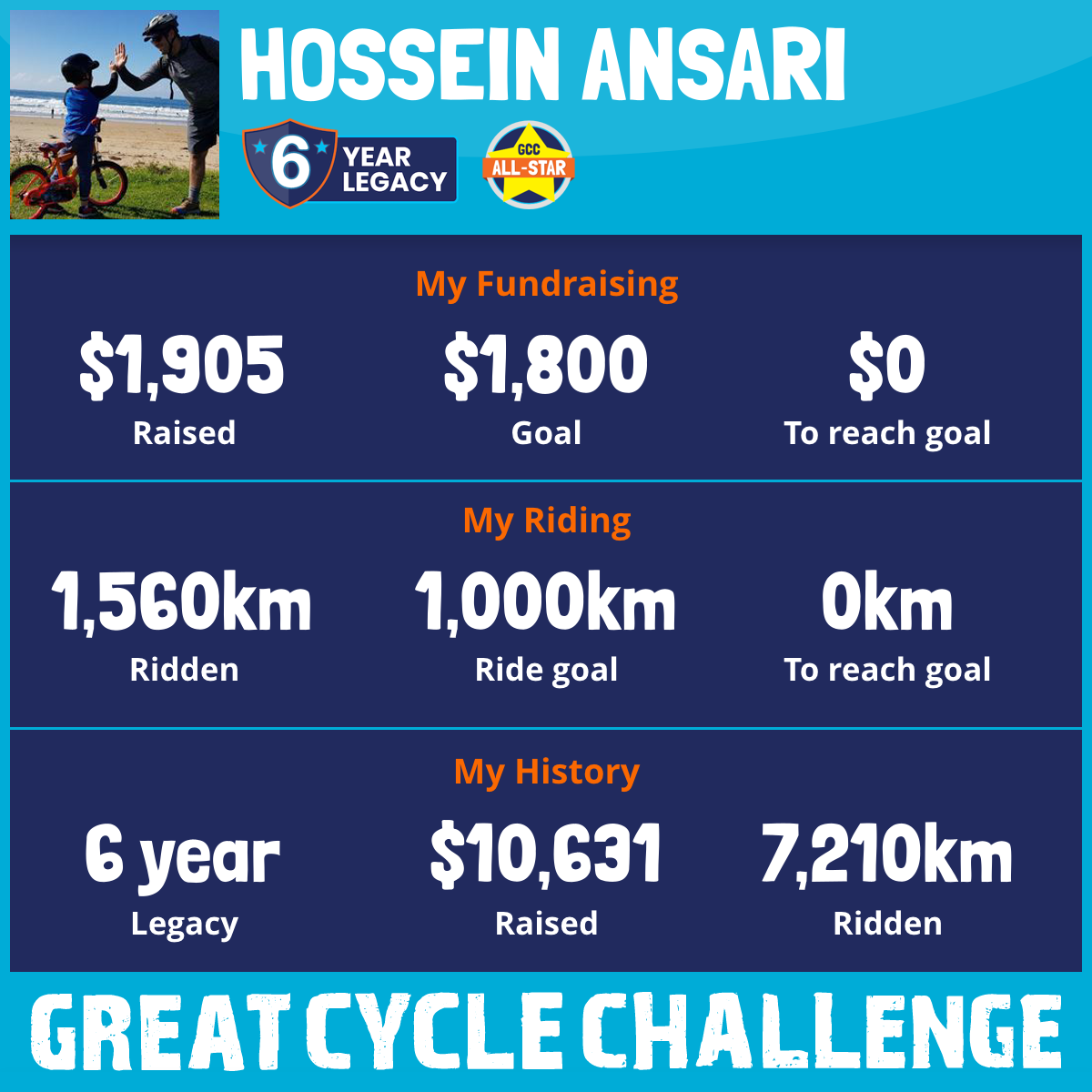 And so I am riding and raising funds to support the Children's Medical Research Institute to continue their work into the prevention, diagnosis, treatment and finding a cure for childhood cancer.