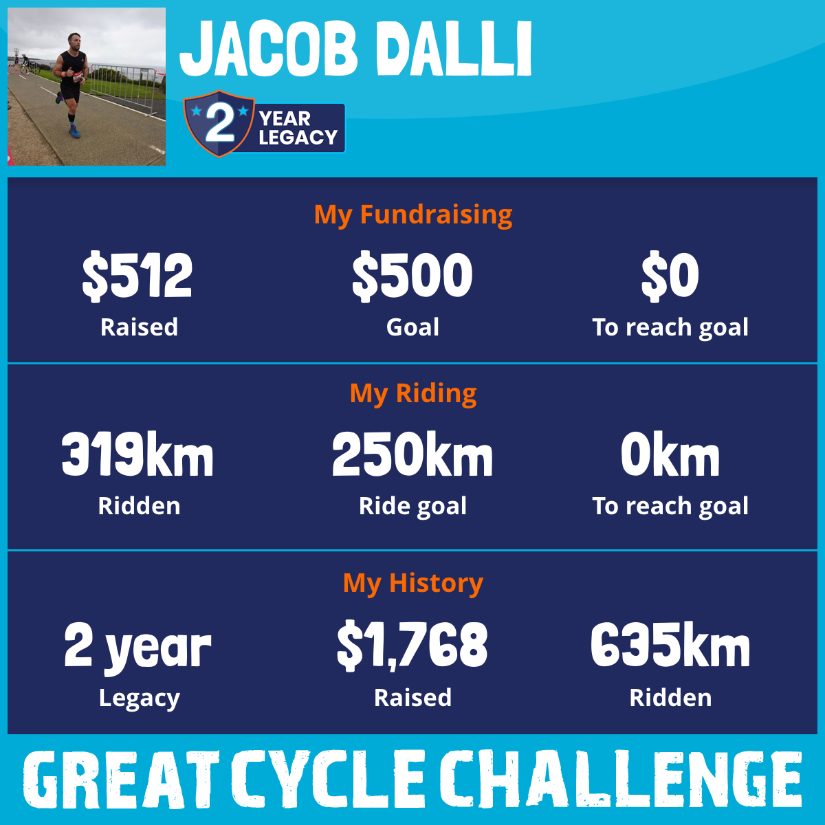 319 km Ridden$512 Raised2025