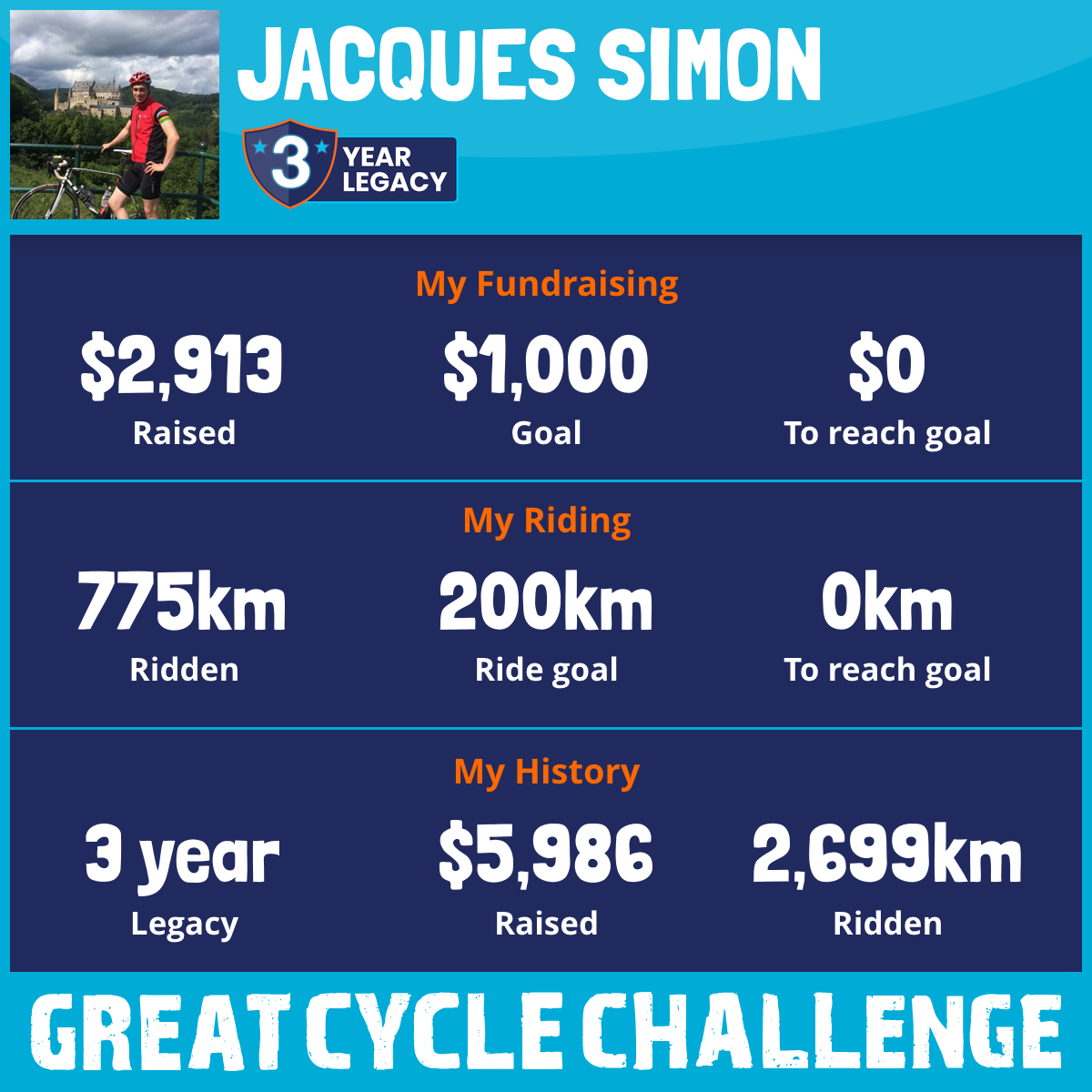 1,404 km Ridden$2,913 Raised2026