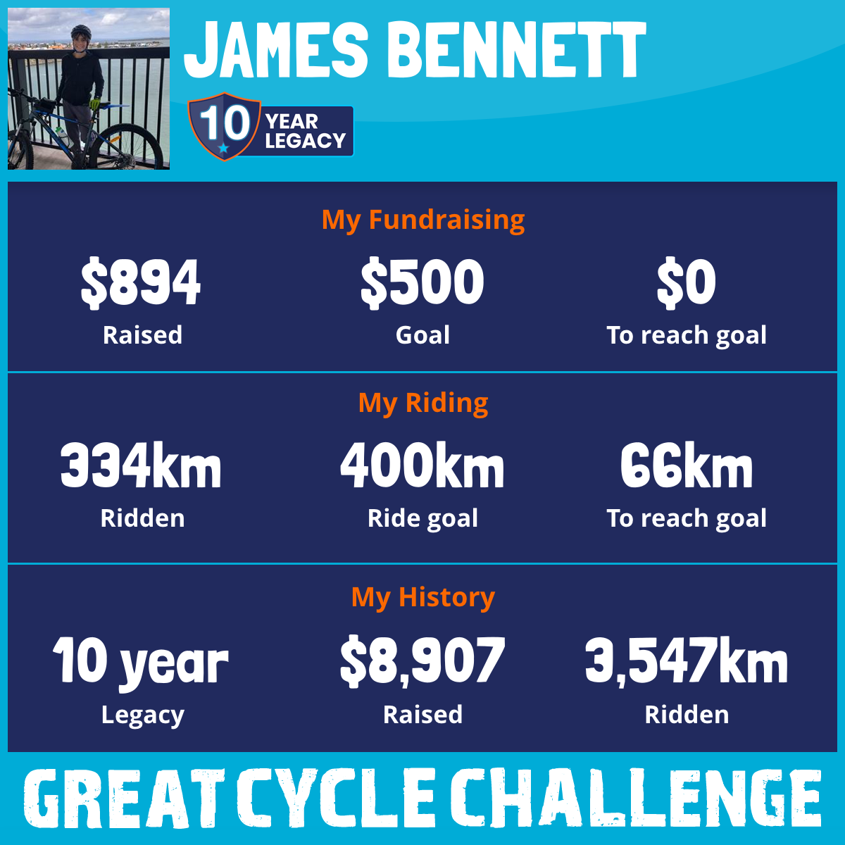 Sadly, we lost a very good friend who has been part of our team for 8 years and we will be riding with Dave's family to honour his memory and his great achievements in fundraising for the kids and saving little lives. I hope we can channel some of Dave's energy to get us through this. https://greatcyclechallenge.com.au/Riders/DavidElliott