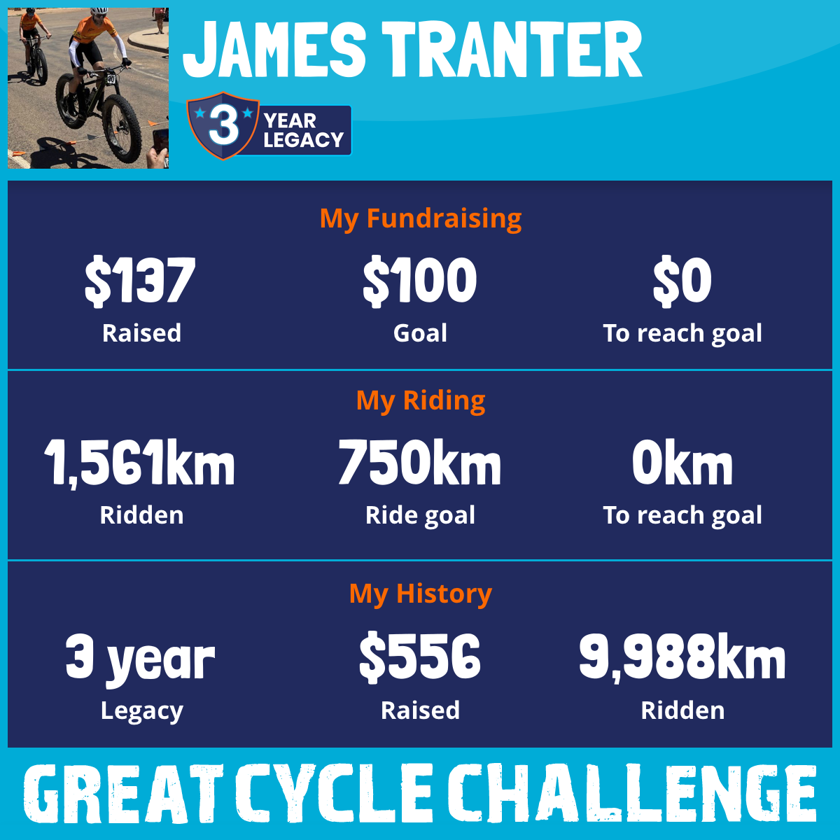 2,259 km Ridden$137 Raised2026