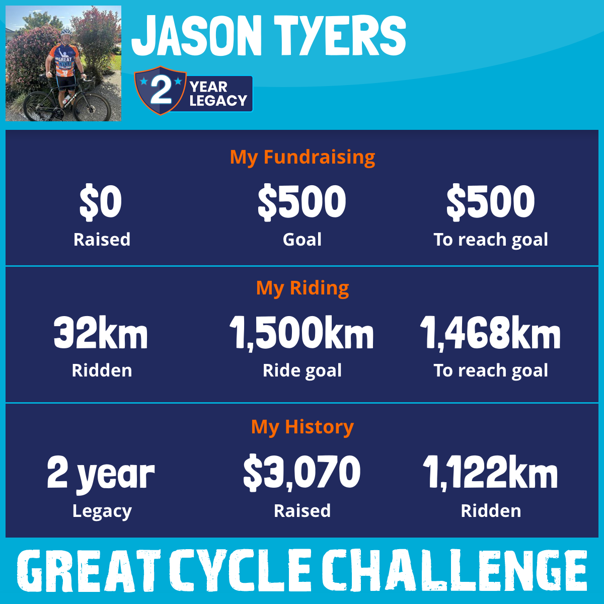 1,090 km Ridden$3,070 Raised2024