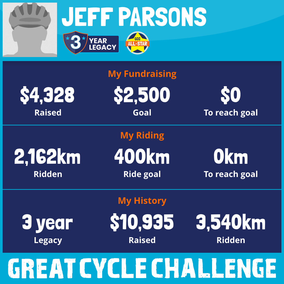 2,942 km Ridden$4,328 Raised2026