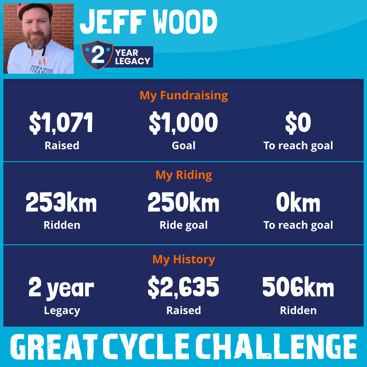 253 km Ridden$1,071 Raised2026
