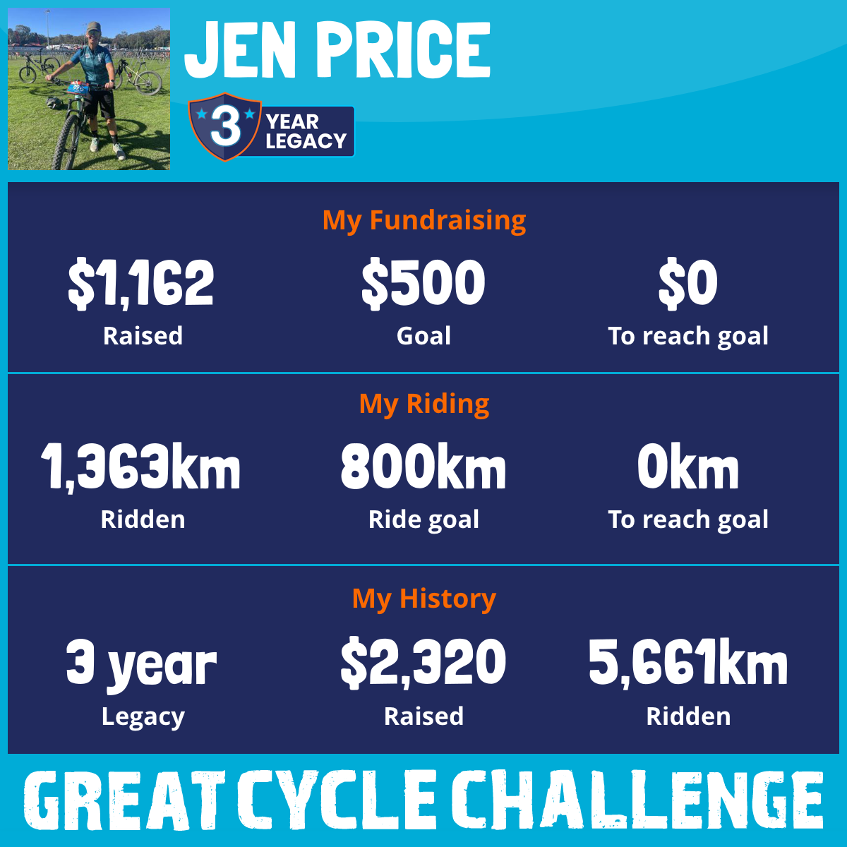 1,363 km Ridden$1,162 Raised2025