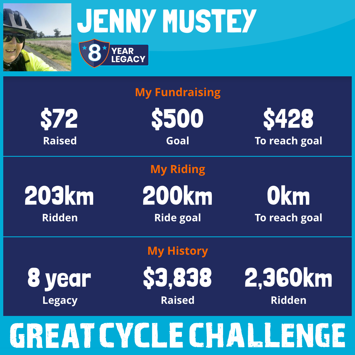 And so I am riding and raising funds to support the Children's Medical Research Institute to continue their work into the prevention, diagnosis, treatment and finding a cure for childhood cancer.