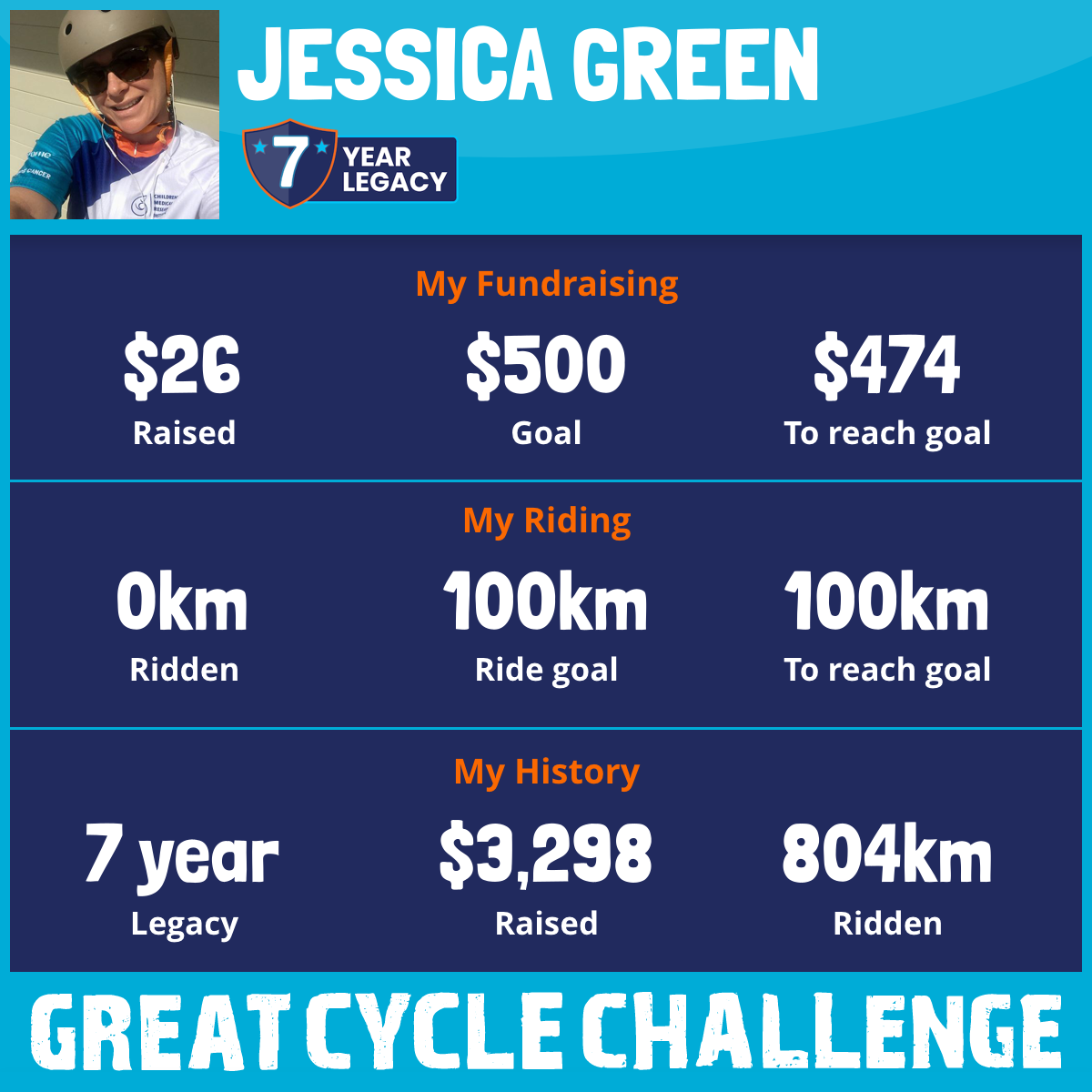 And so I am riding and raising funds to support the Children's Medical Research Institute to continue their work into the prevention, diagnosis, treatment and finding a cure for childhood cancer.