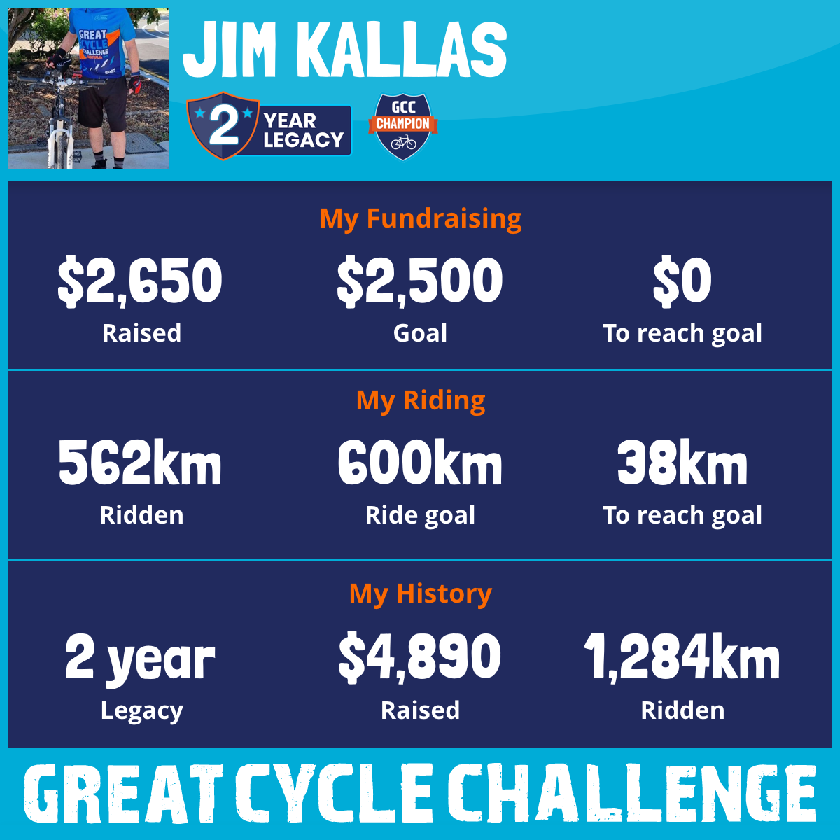 562 km Ridden$2,650 Raised2026