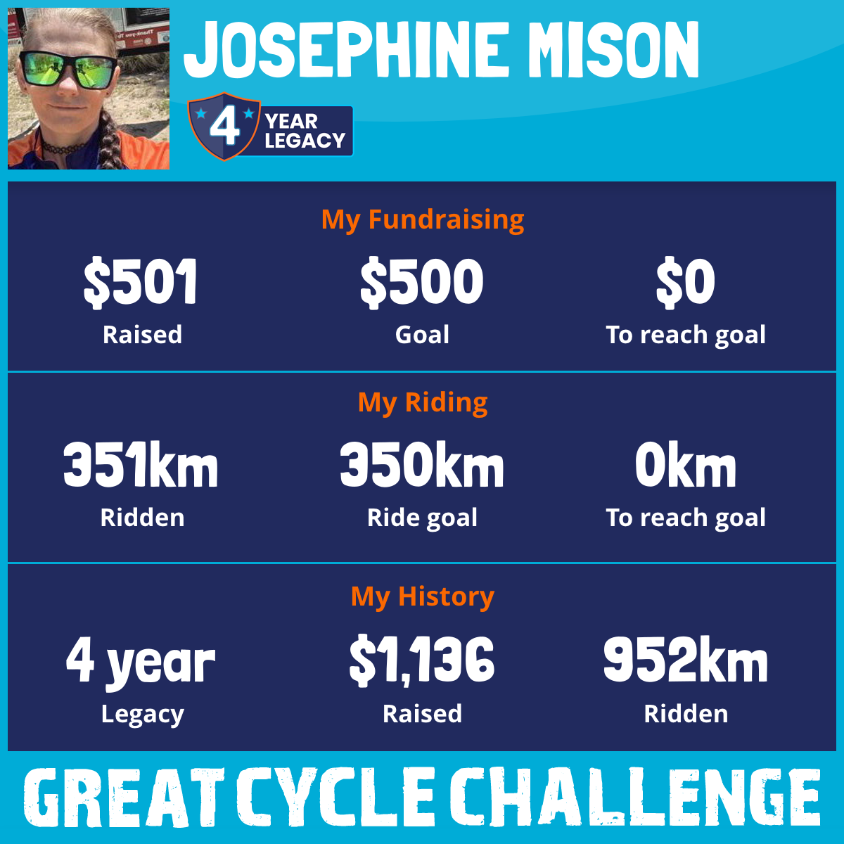 351 km Ridden$501 Raised2025