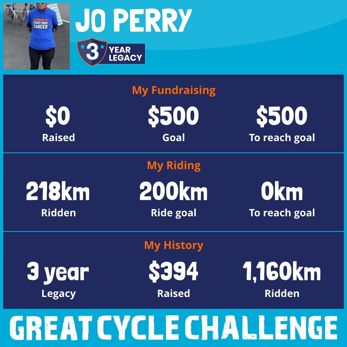 I am riding 200 km in memory of my mum, Beryl. Please sponsor me and support my challenge to fight kids' cancer and save little lives.