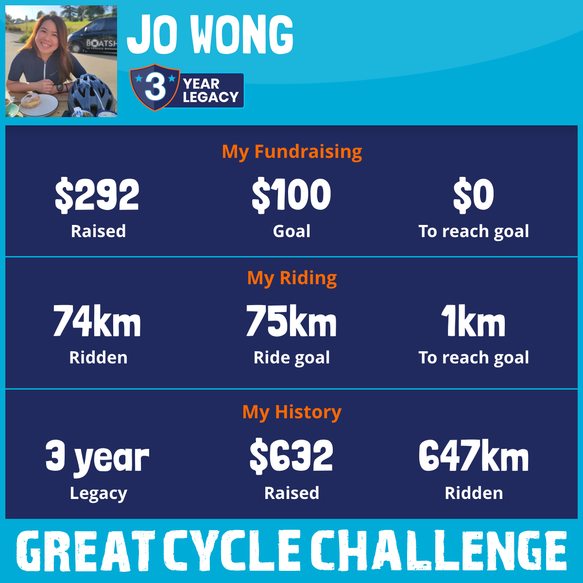 74 km Ridden$292 Raised2026