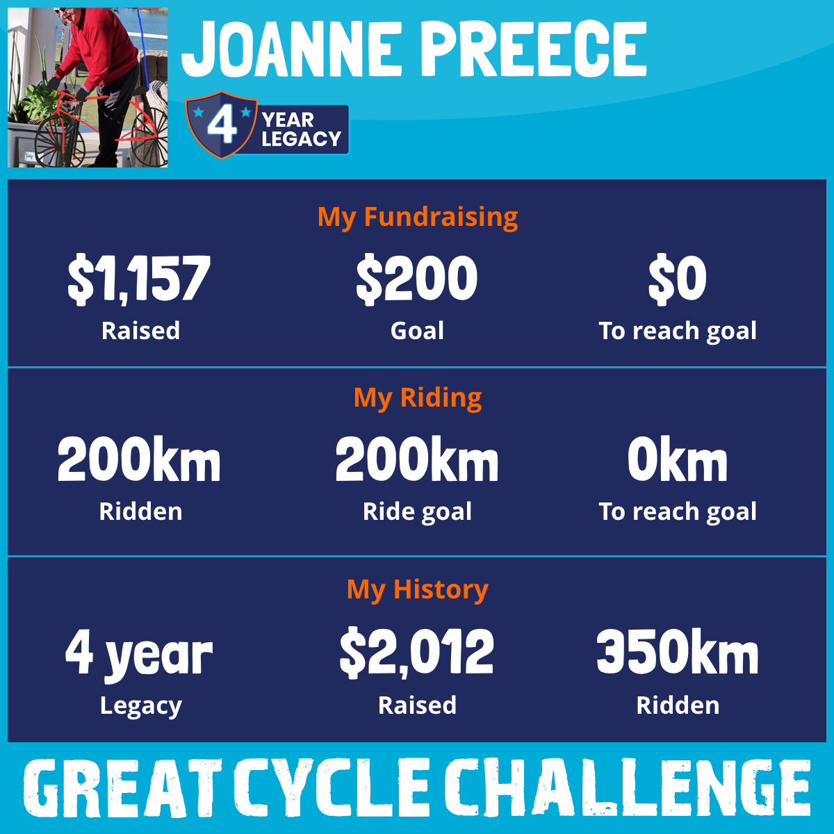 200 km Ridden$1,157 Raised2025