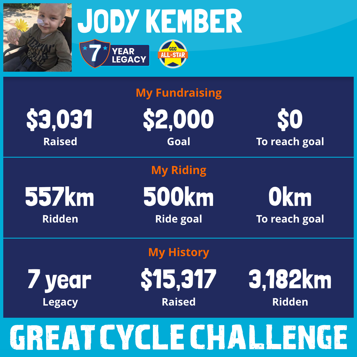 557 km Ridden$3,031 Raised2026