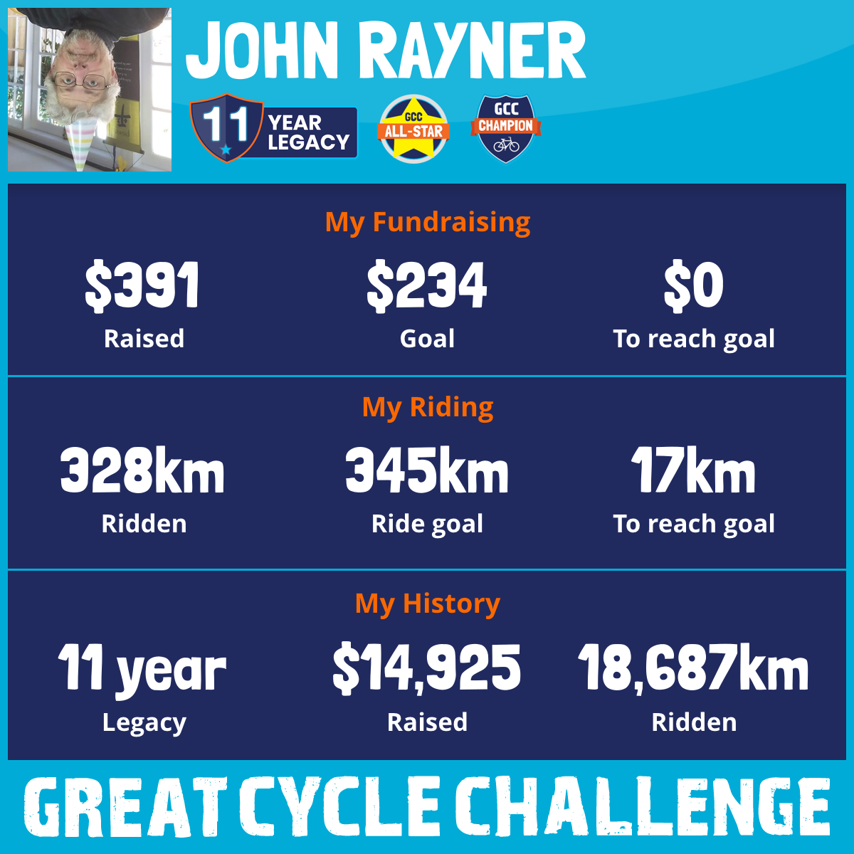 The difference this year is that I will be cycling on a stationary bike supported by my local gym Launceston Insitute of Fitness & Training and Active Sports Physiotherapy & Rehab.