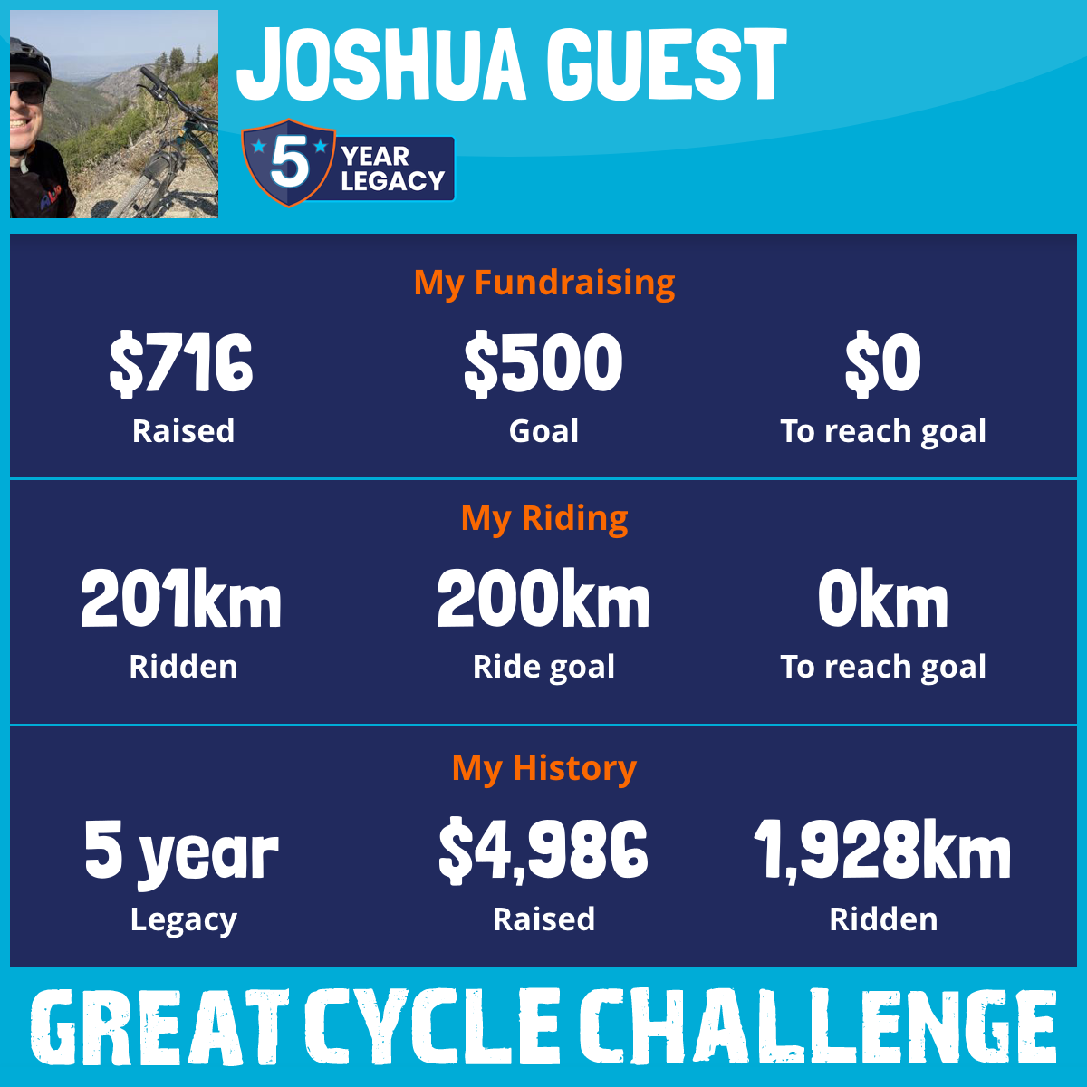 201 km Ridden$716 Raised2025
