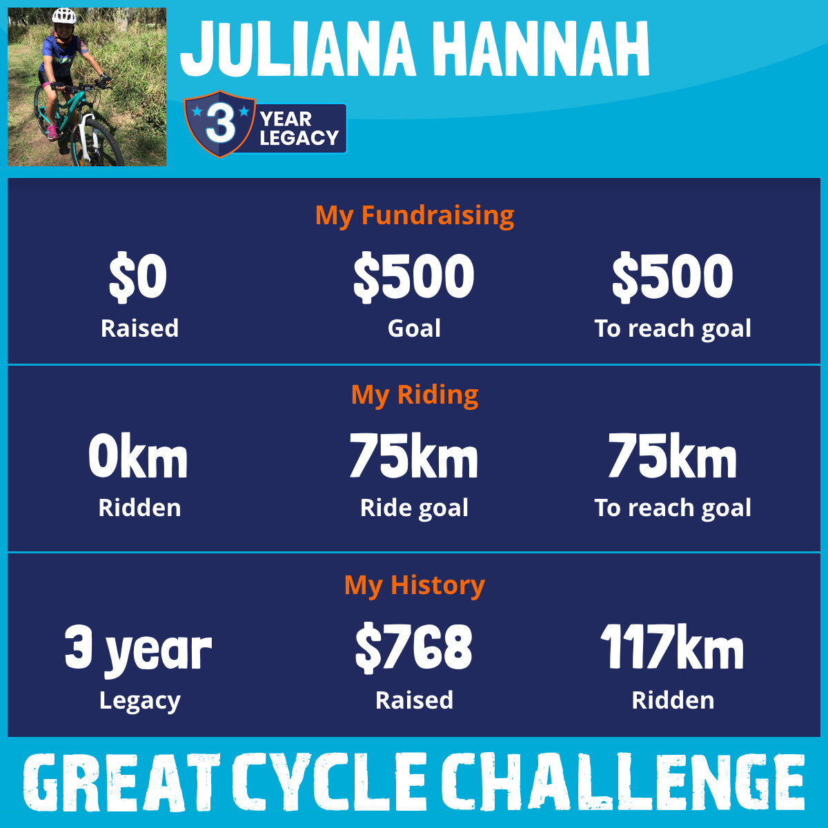 And so I am riding and raising funds to support the Children's Medical Research Institute to continue their work into the prevention, diagnosis, treatment and finding a cure for childhood cancer.