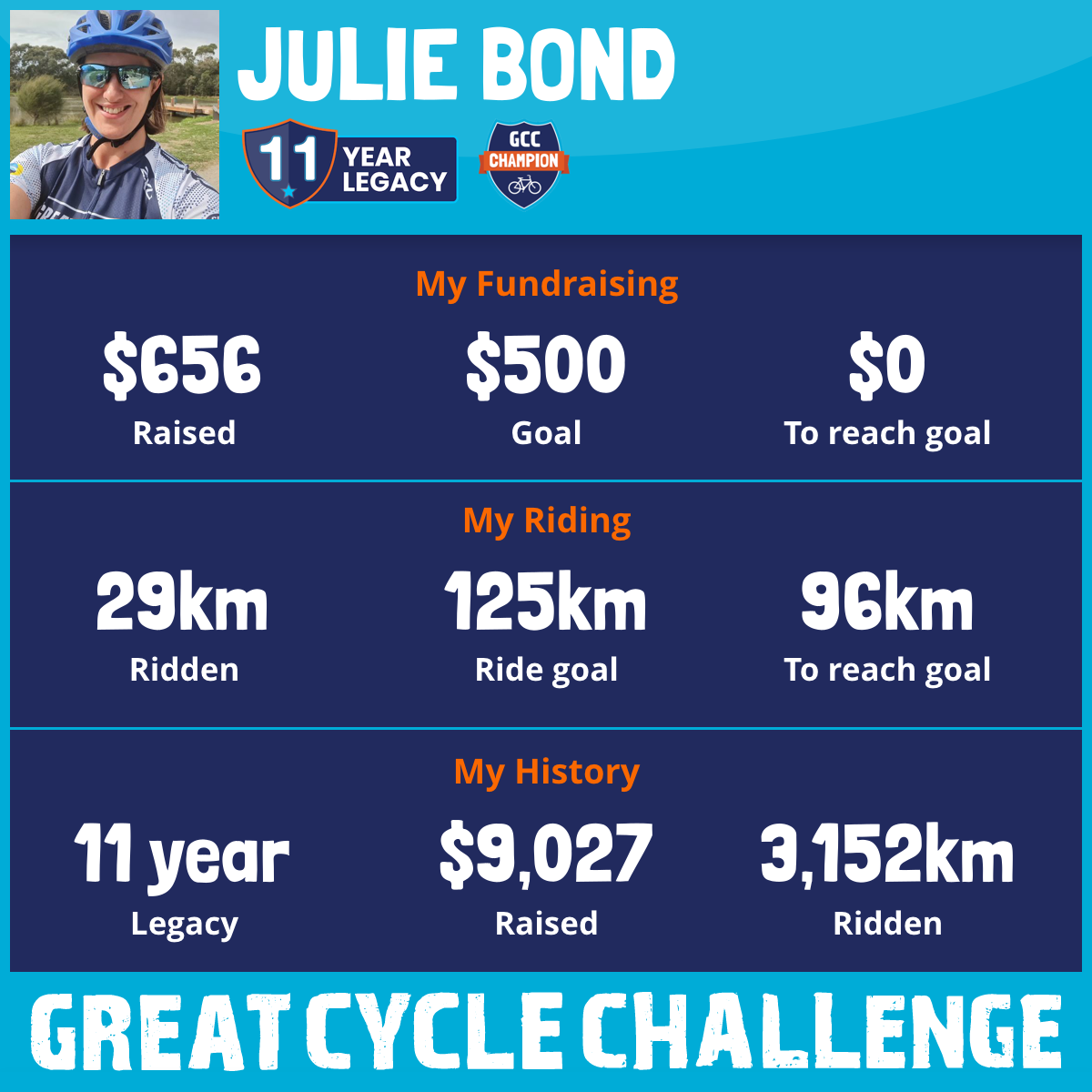 And so I am riding and raising funds to support the Children's Medical Research Institute to continue their work into the prevention, diagnosis, treatment and finding a cure for childhood cancer.