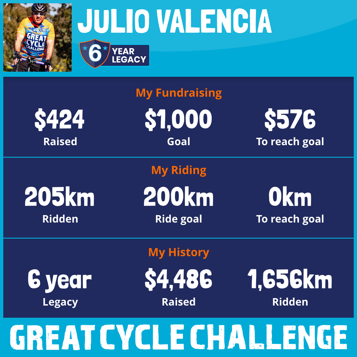 205 km Ridden$424 Raised2025