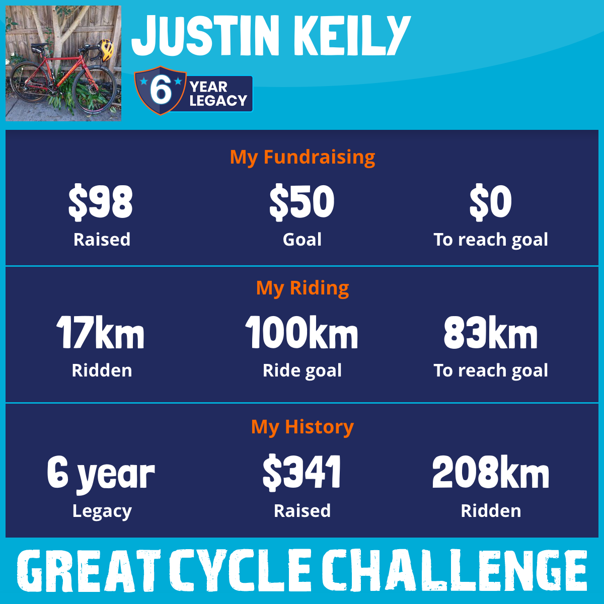 17 km Ridden$98 Raised2025