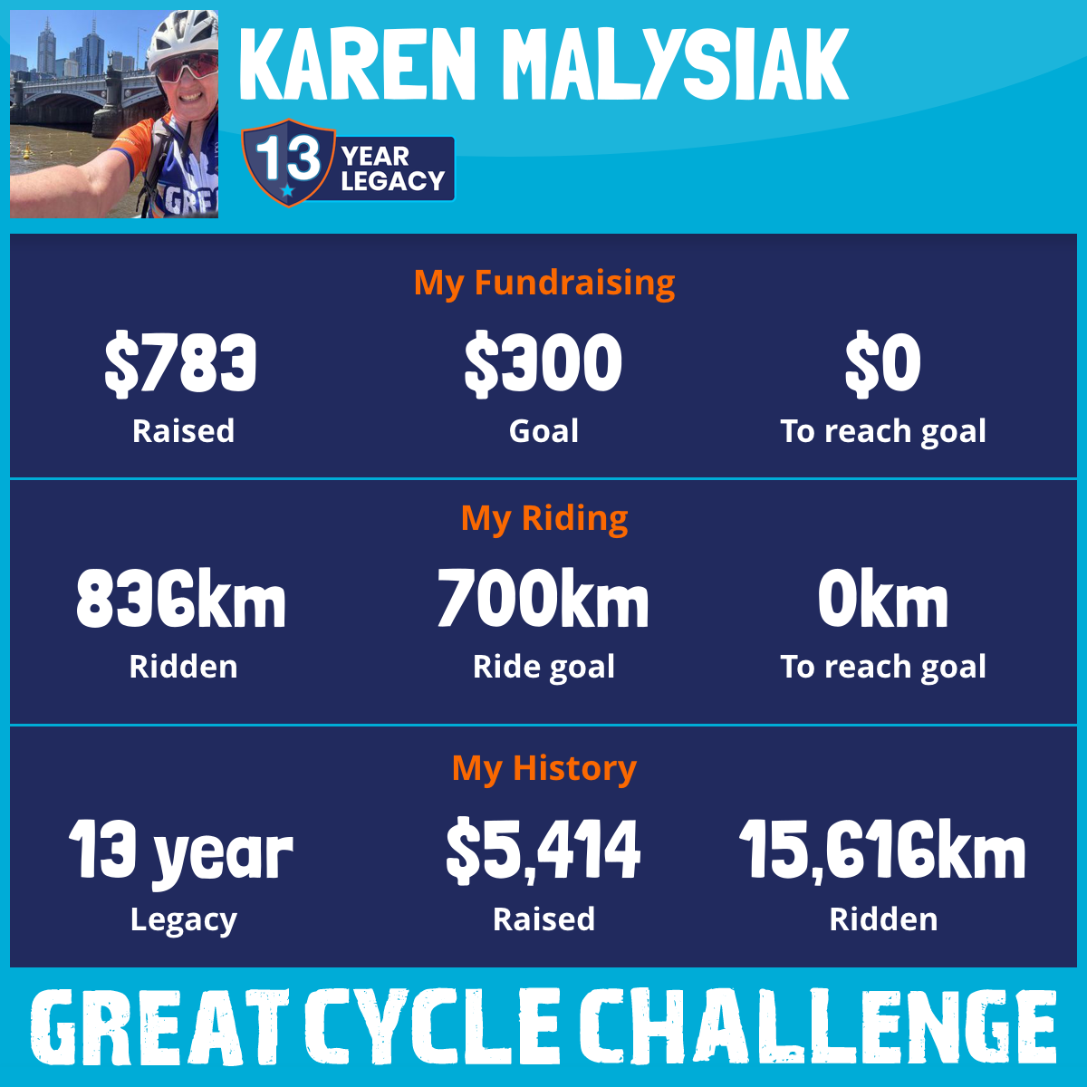 803 km Ridden$657 Raised2023