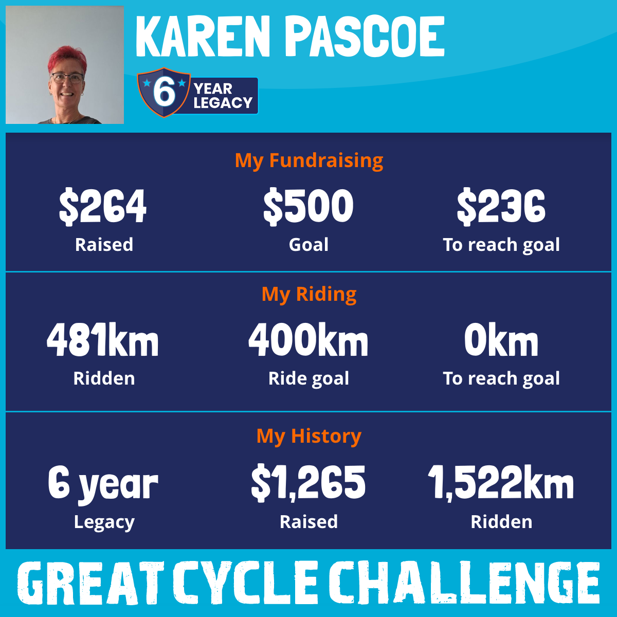 “Thank you 🙏 I can pedal further this October since I'm not away on holiday for half of the month ... it's a great cause and I appreciate your support ❣️”