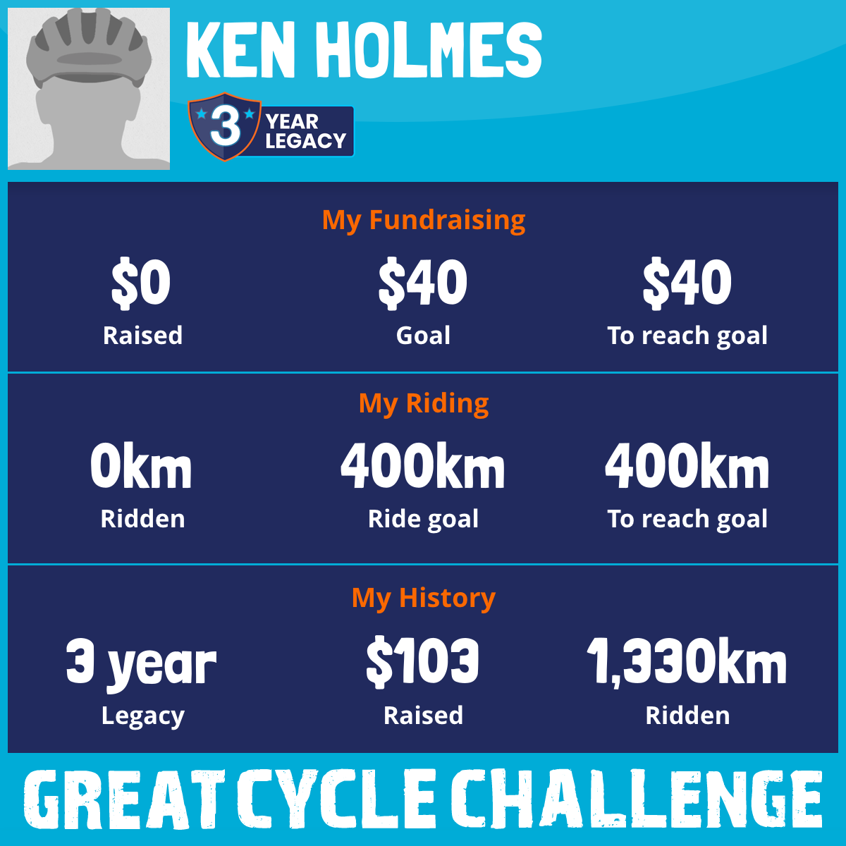 I've Ridden 0.0 km My goal is 400 km