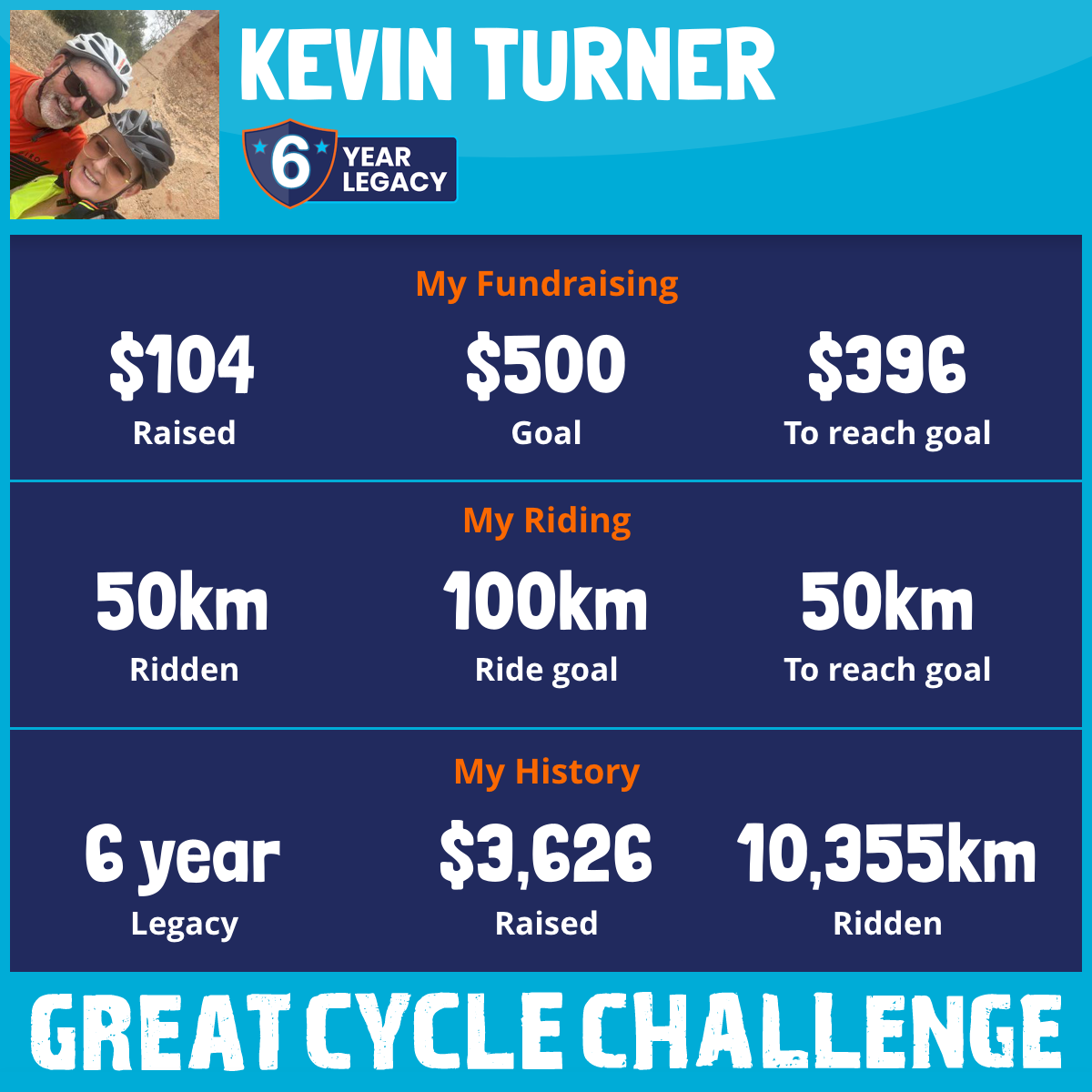 This is my 6th year being a part of the "Great Cycle Challenge". The challenge is held over the month of October to help raise money to fight kids' cancer!
