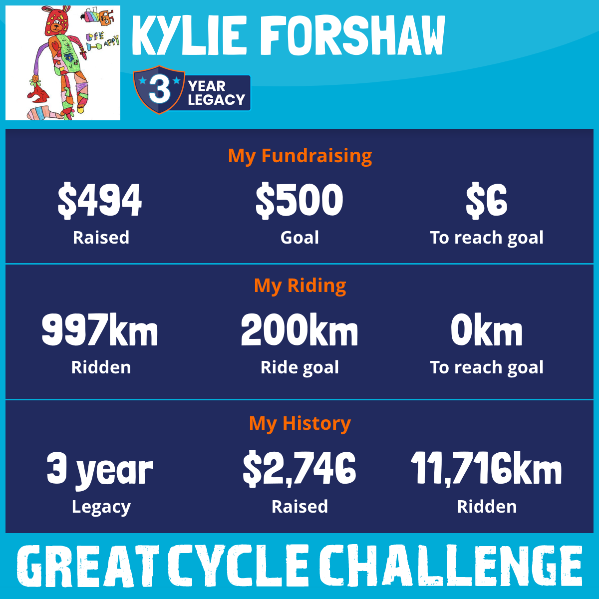 And so I am riding and raising funds to support the Children's Medical Research Institute to continue their work into the prevention, diagnosis, treatment and finding a cure for childhood cancer.