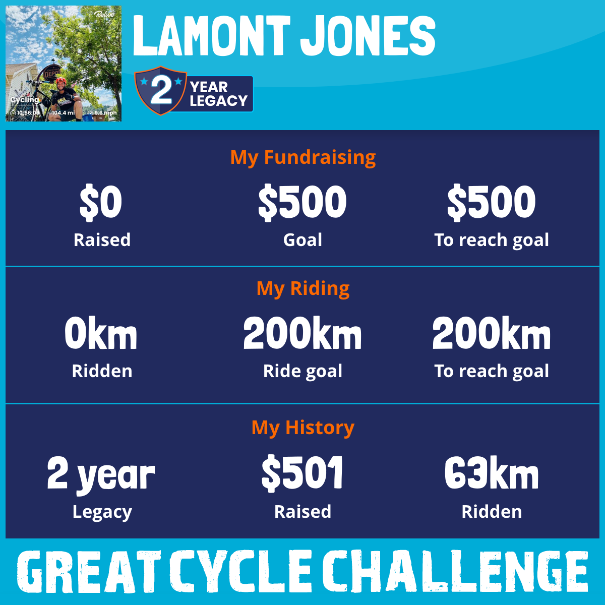 I've raised $0 My goal is $500 Donate Now