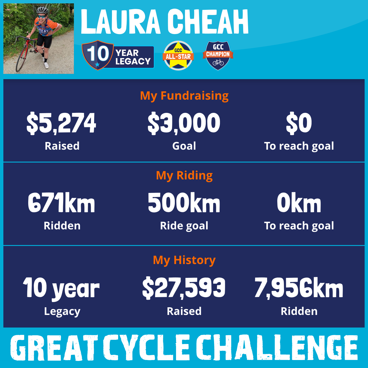 818 km Ridden$5,274 Raised2026