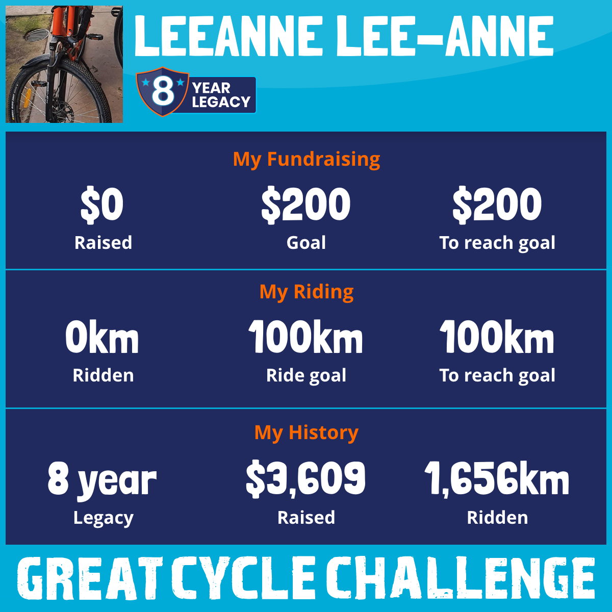 80 km Ridden$647 Raised2023
