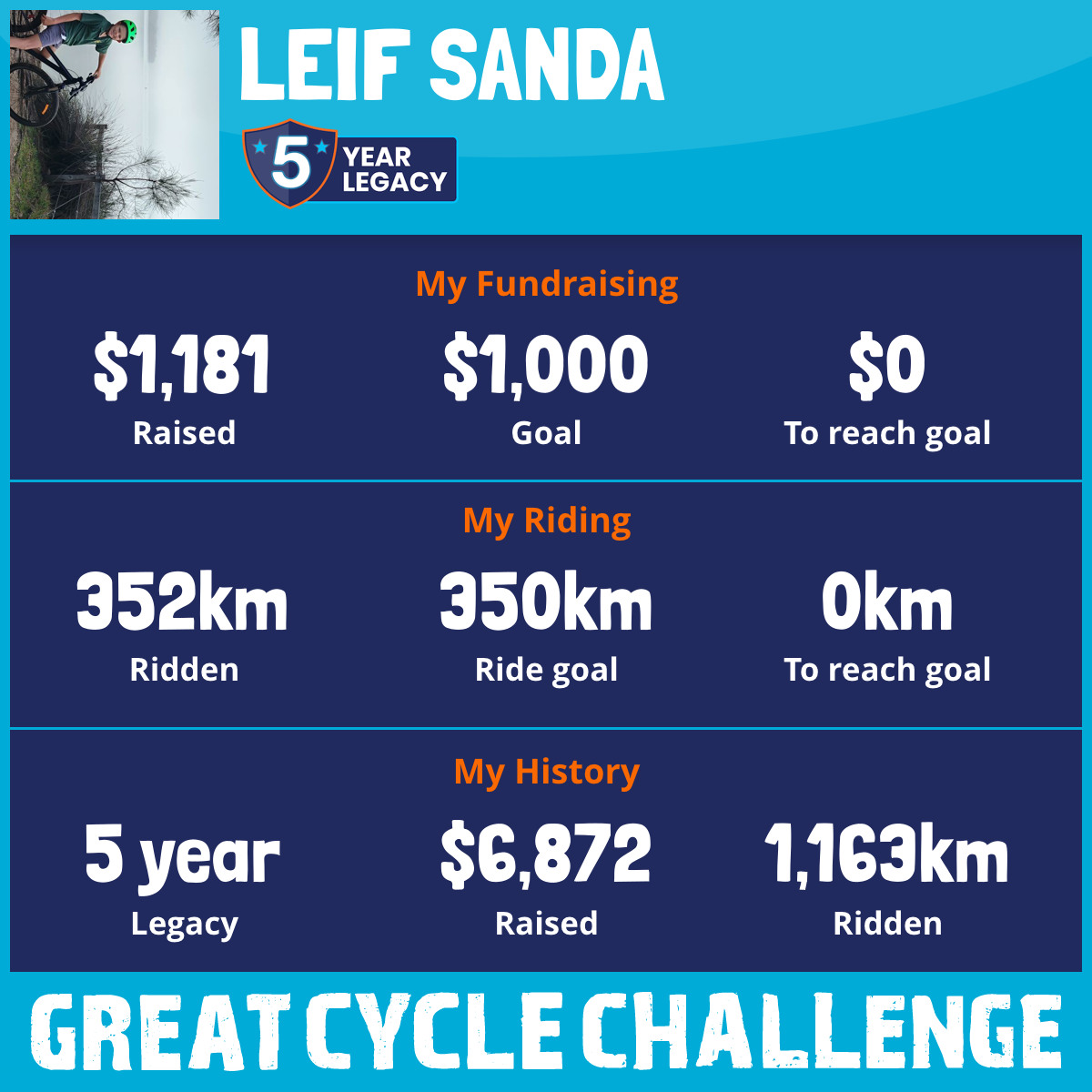 352 km Ridden$1,181 Raised2026