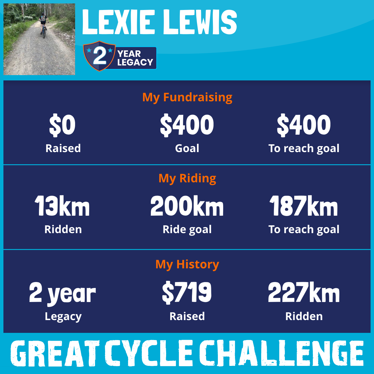 214 km Ridden$719 Raised2023