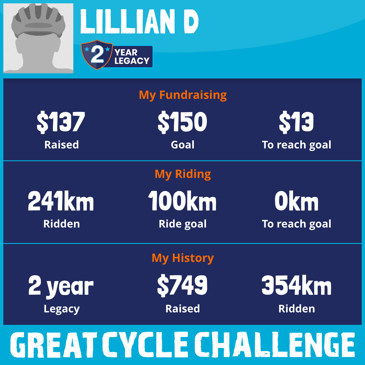 And so I am riding and raising funds to support the Children's Medical Research Institute to continue their work into the prevention, diagnosis, treatment and finding a cure for childhood cancer.