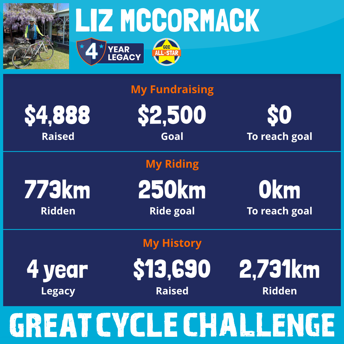 And so I am riding and raising funds to support the Children's Medical Research Institute to continue their work into the prevention, diagnosis, treatment and finding a cure for childhood cancer.