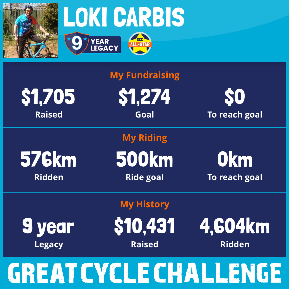 663 km Ridden$1,705 Raised2026
