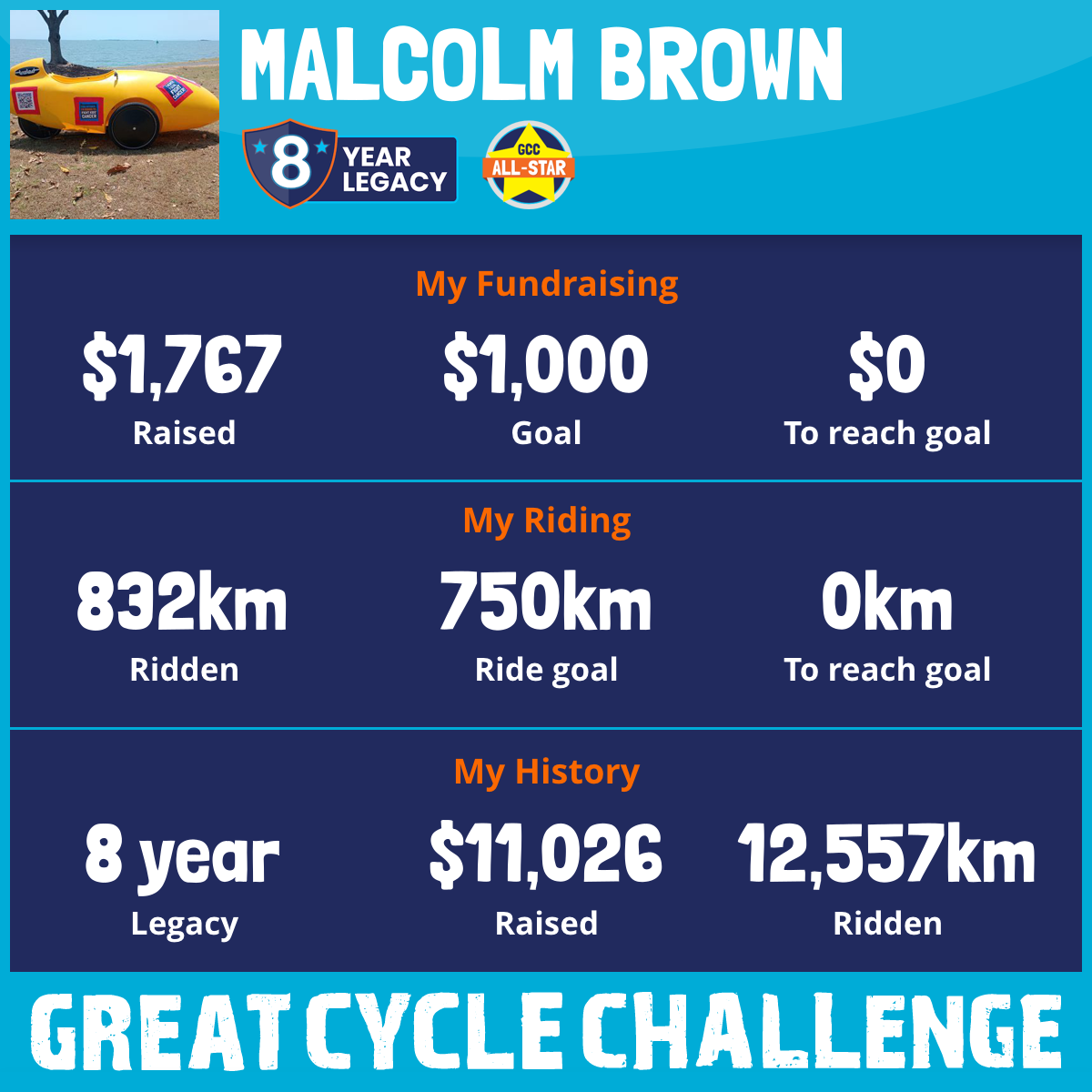 3,715 km Ridden$1,076 Raised2022