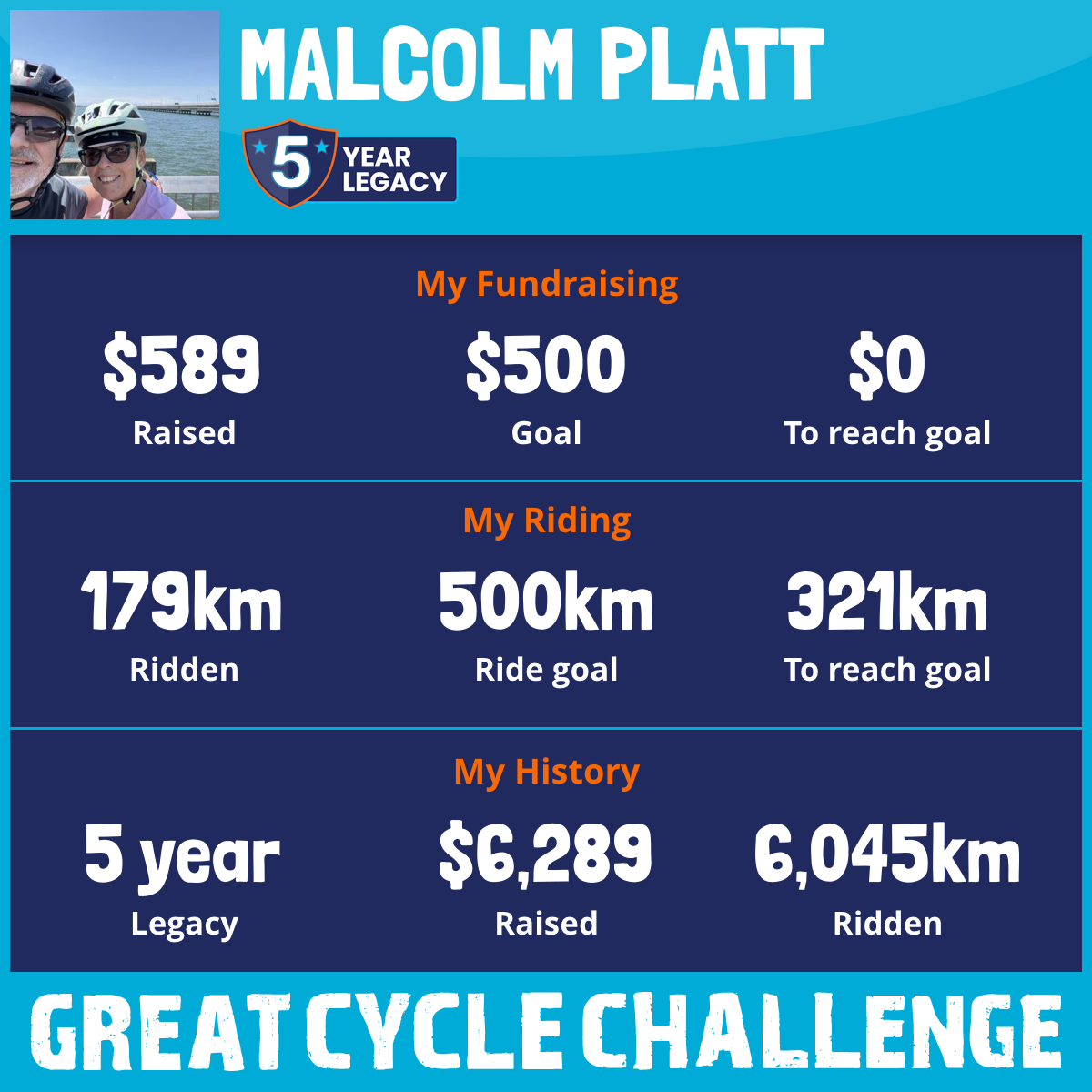 1,679 km Ridden$2,639 Raised2021