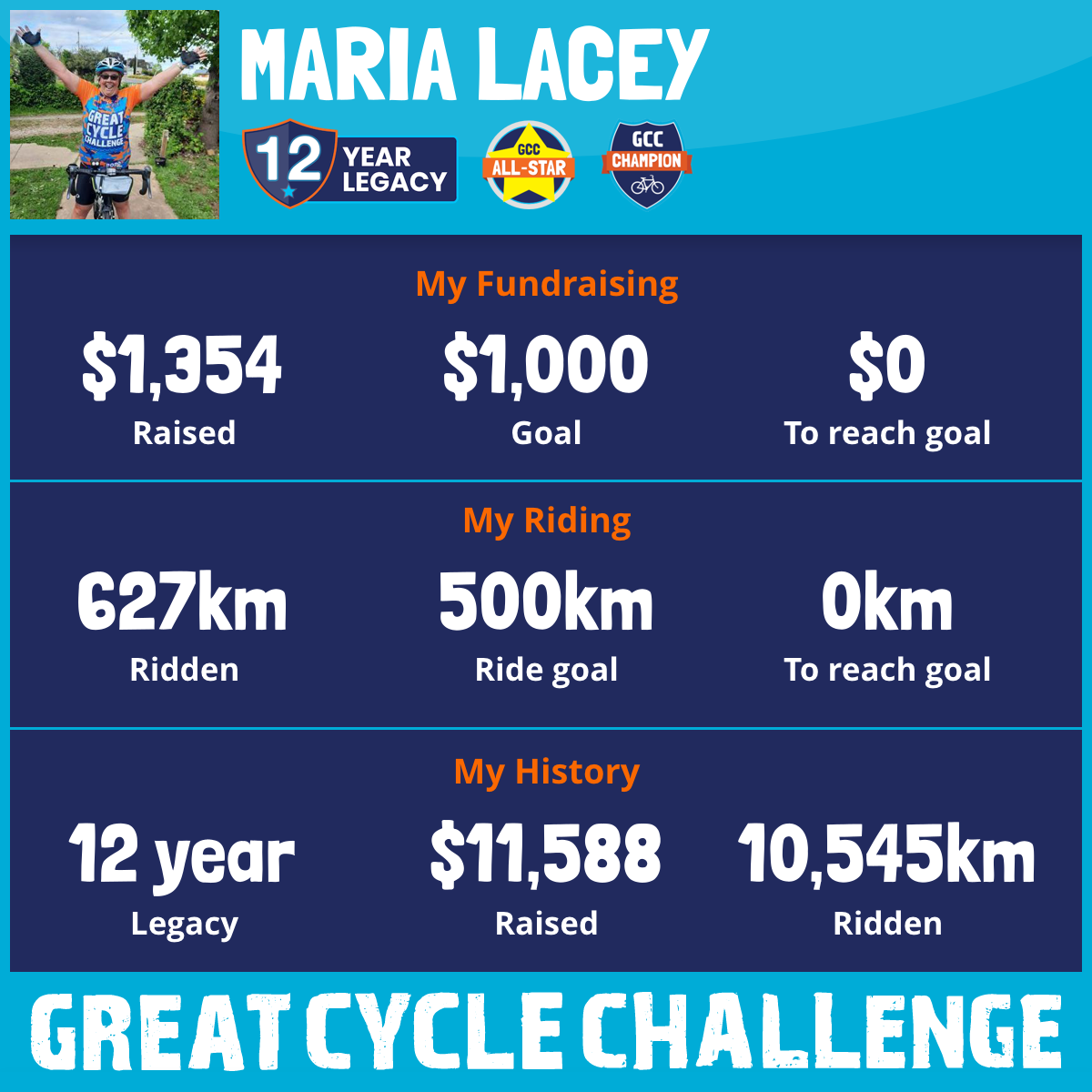 And so I am riding and raising funds to support the Children's Medical Research Institute to continue their work into the prevention, diagnosis, treatment and finding a cure for childhood cancer.