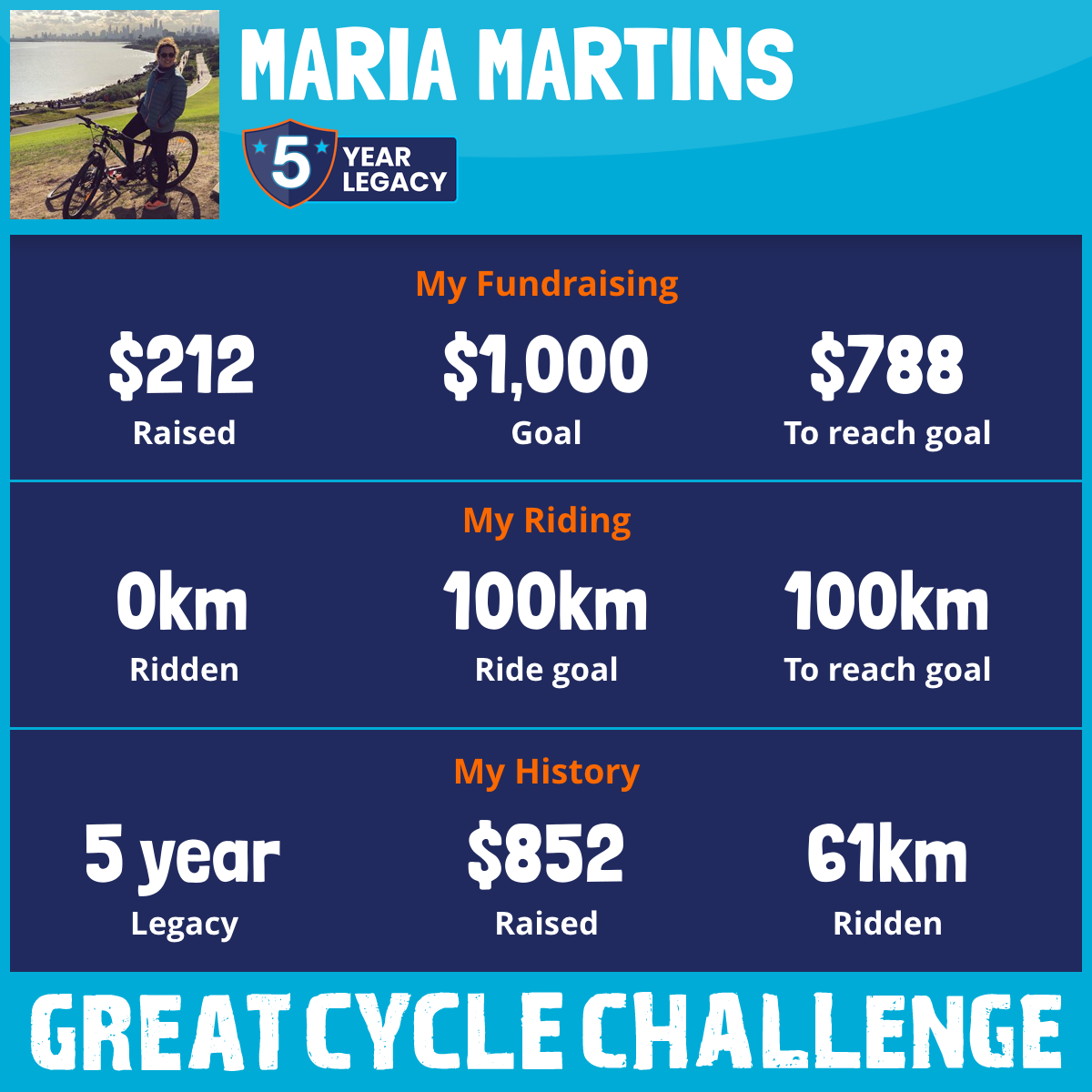 61 km Ridden$640 Raised2022