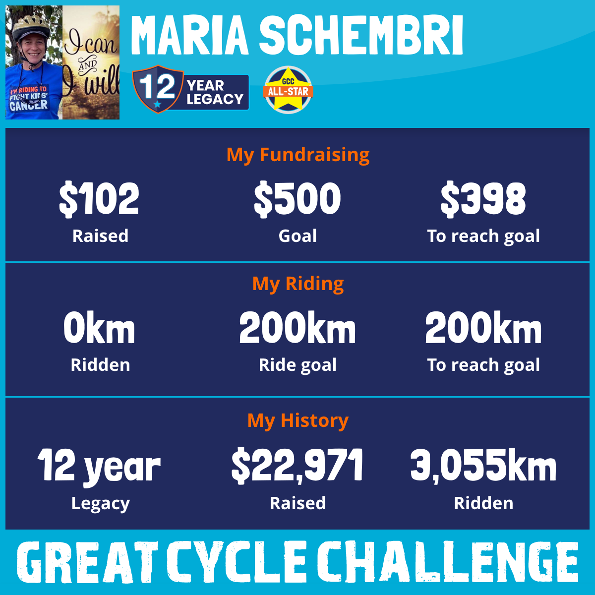 And so I am riding and raising funds to support the Children's Medical Research Institute to continue their work into the prevention, diagnosis, treatment and finding a cure for childhood cancer.