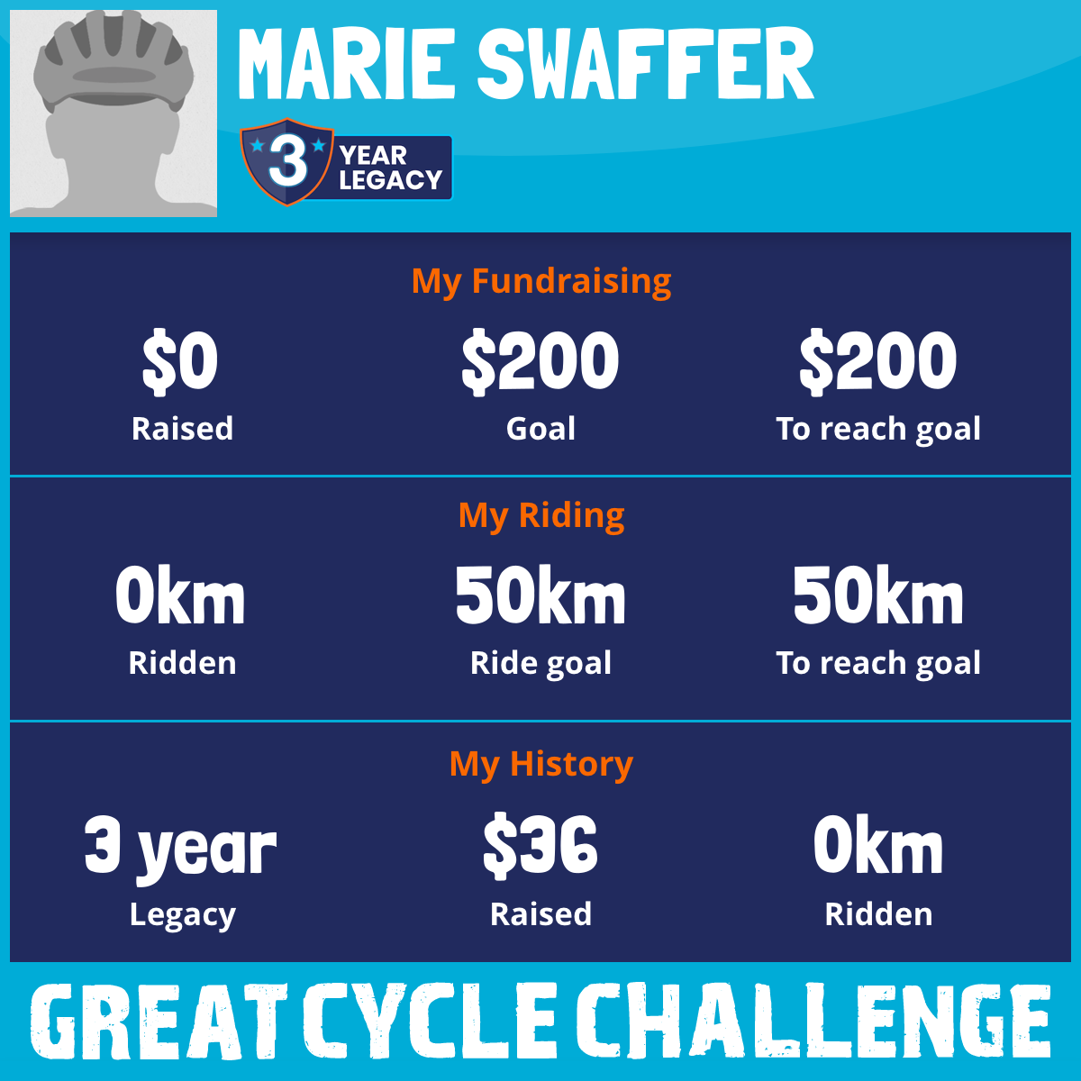I am riding 50 km for my husband, My best friend, Marie. Please sponsor me and support my challenge to fight kids' cancer and save little lives.