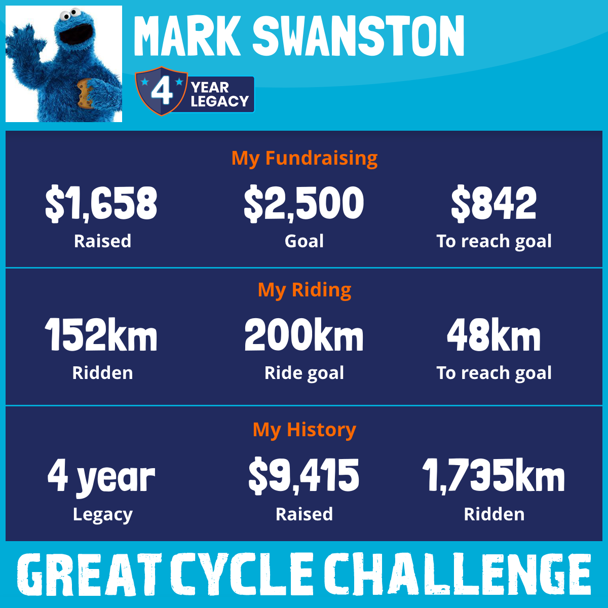 And so I am riding and raising funds to support the Children's Medical Research Institute to continue their work into the prevention, diagnosis, treatment and finding a cure for childhood cancer.