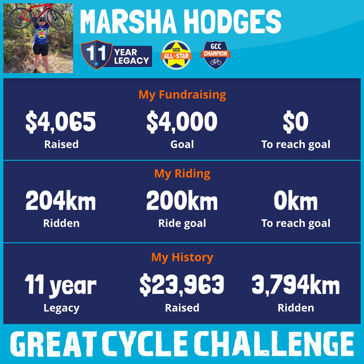 204 km Ridden$4,065 Raised2026